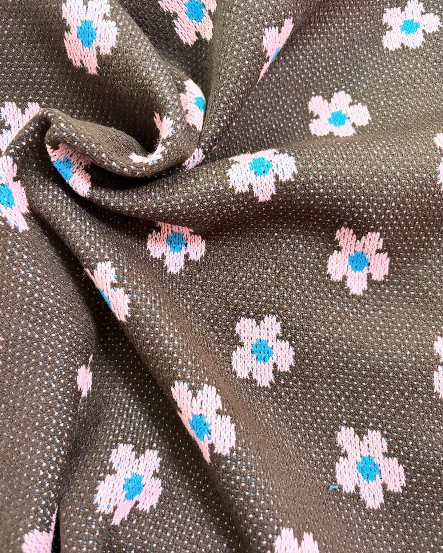 【即納】ニット生地 ブラウン✖️ピンクお花柄