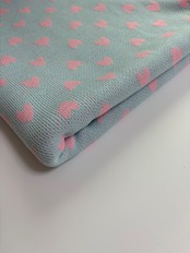 ニット生地 水色✖️ピンクハート