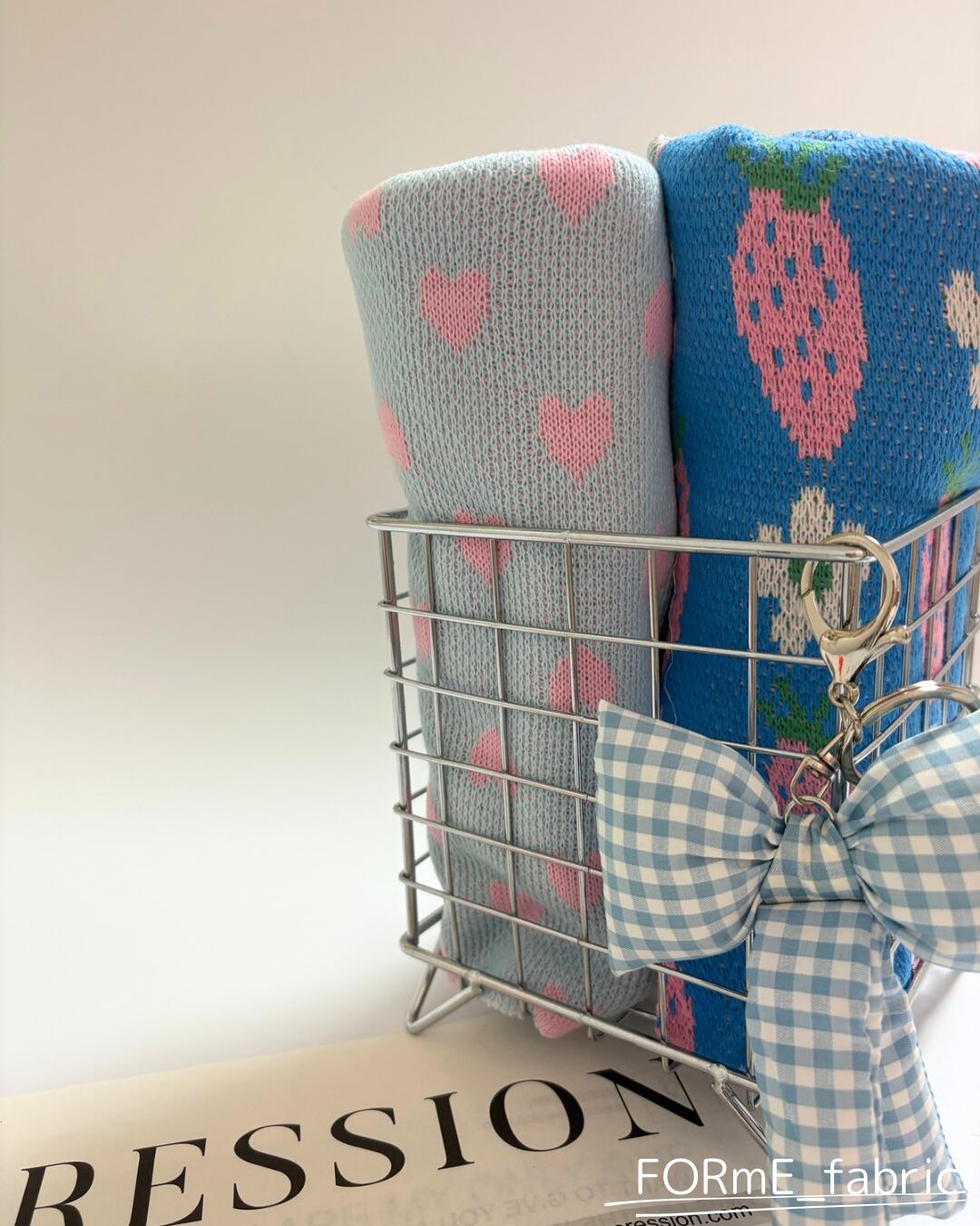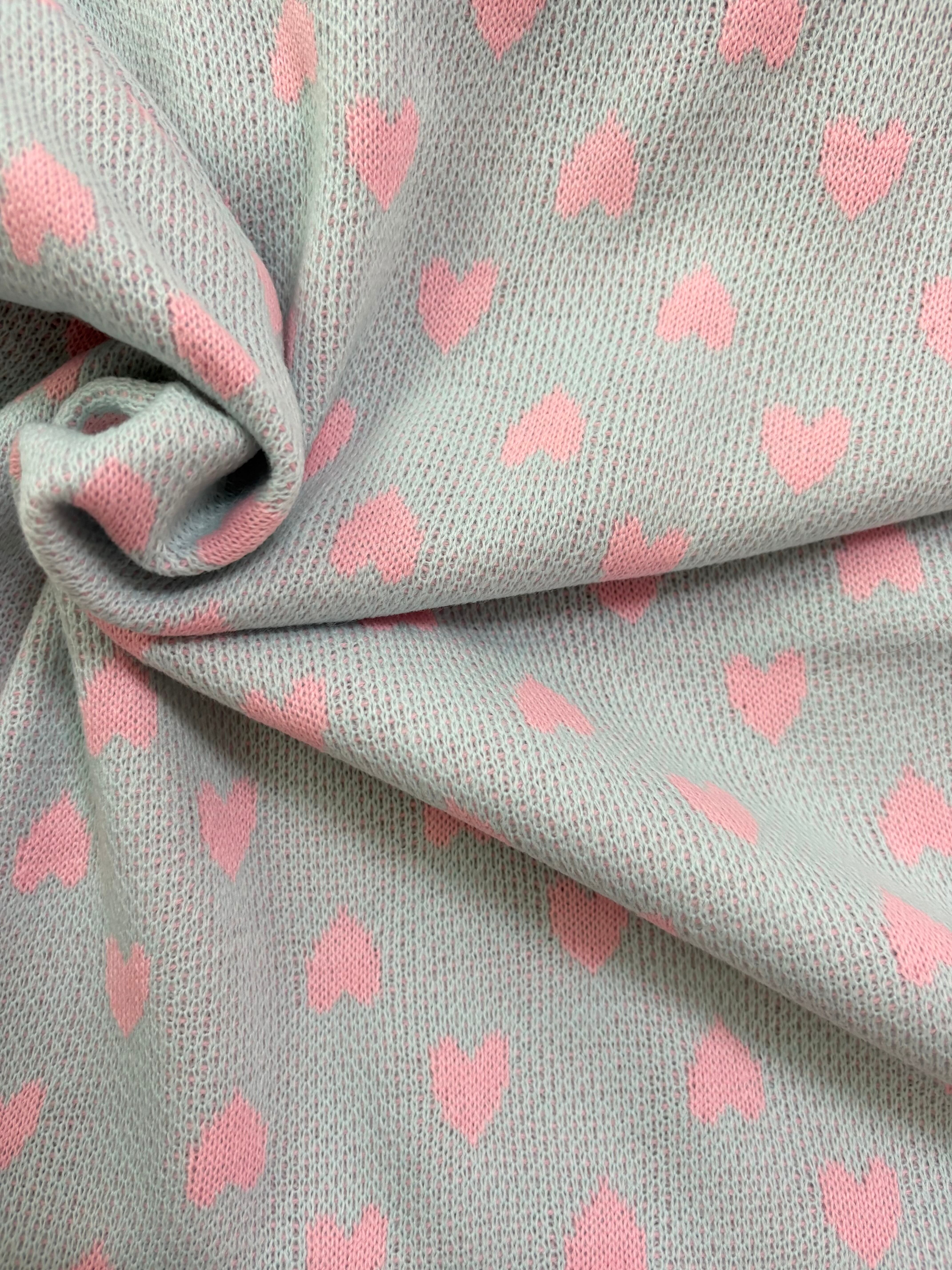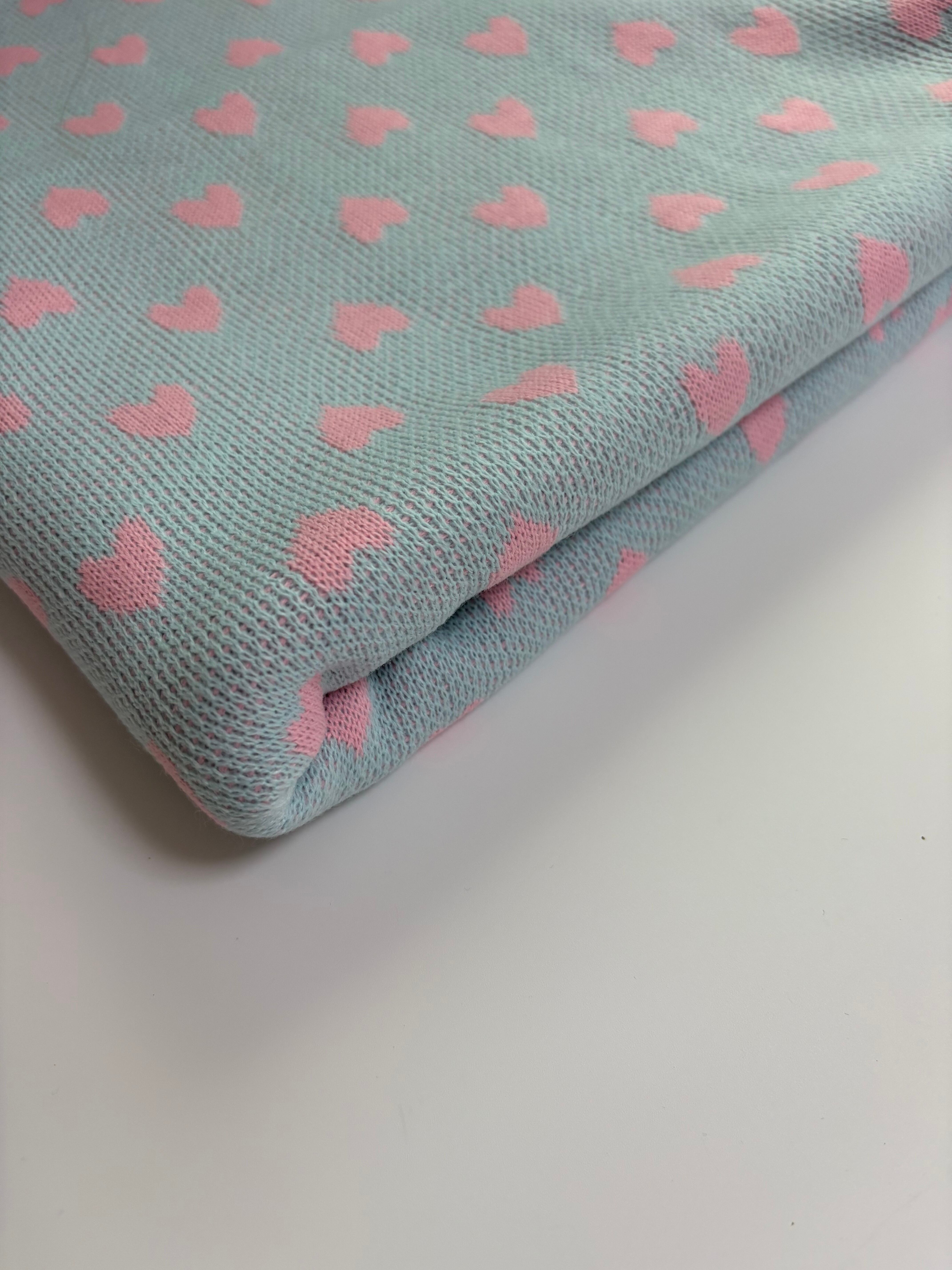 【即納】ニット生地 水色✖️ピンクハート