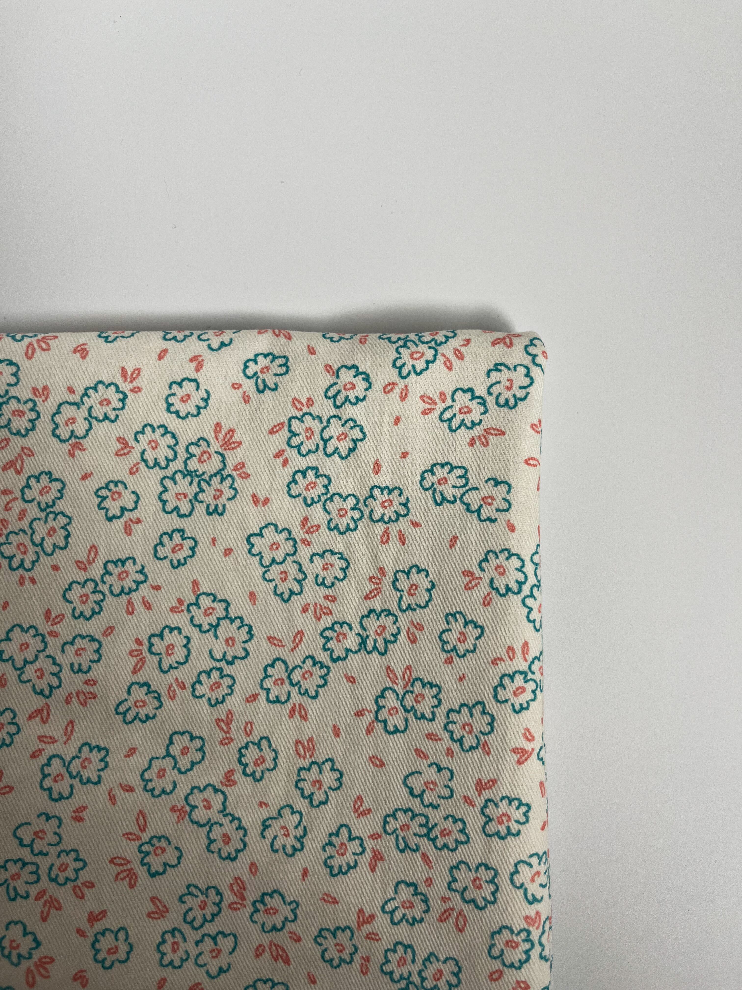 白地✖️水色小花✖️ピンク葉の総柄
