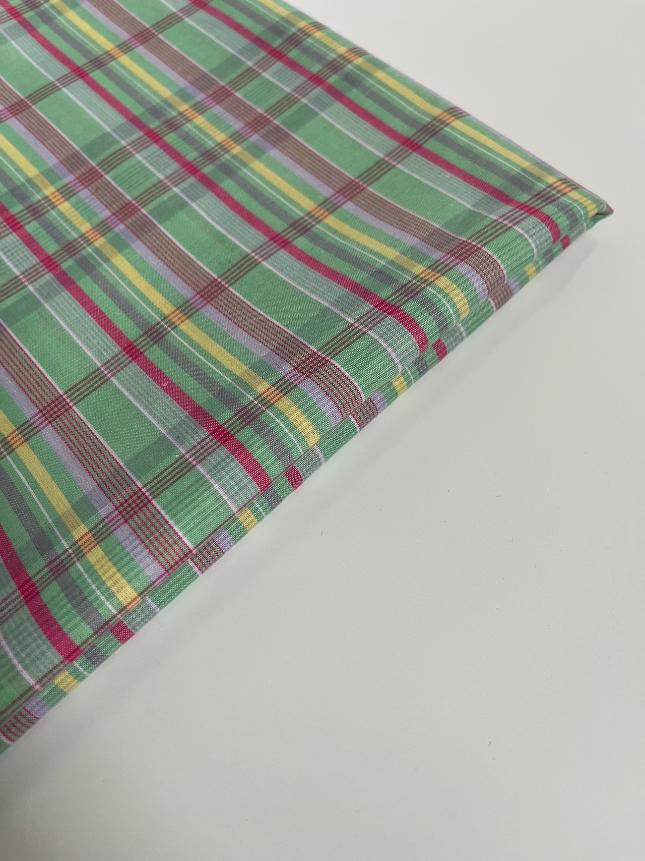 【即納】薄緑色✖️ピンク✖️黄色チェック柄 コットン生地[me015]